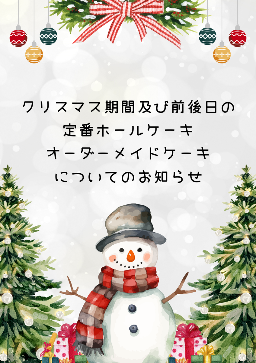 クリスマス期間及び前後日のケーキの販売について プリントデコレーション(オンラインショップ予約可) 生クリームデコレーション(オンラインショップ予約可) チョコクリームデコレーション(オンラインショップ予約可) スペシャル生クリーム デコレーション(オンラインショップ予約可) フルーツデコレーションケーキ(オンラインショップ予約可) チョコベリーケーキ(オンラインショップ予約可) おとぎの国の アリス(オンラインショップ予約可) シンデレラ(オンラインショップ予約可) ゆめいろユニコーン(オンラインショップ予約可) ローズひめ ドレスケーキ(オンラインショップ予約可) プリンセス ドレスケーキ(オンラインショップ予約可) ガナッシュケーキ 3日前予約 コキーヌ 3日前予約 ルージュ 3日前予約 バロン 3日前予約 ムーンフラワー(オンラインショップ予約可) グレース(オンラインショップ予約可) ロッソ (オンラインショップ予約可) アントルメロールケーキ(オンラインショップ予約可) 和栗のモンブラン生クリーム(オンラインショップ予約可) 昔ながらのモンブラン生クリーム(オンラインショップ予約可) いちごタルト 11月〜5月限定 和栗のモンブランタルト(オンラインショップ予約可) フルーツタルト(オンラインショップ予約可) スーパートレイン(オンラインショップ予約可) 黄色い車(オンラインショップ予約可) パンダくん(オンラインショップ予約可) くまくん(オンラインショップ予約可) うさぎちゃん(オンラインショップ予約可) チーズスフレ 3日前予約 クラシック ショコラ(オンラインショップ予約可) 2段ケーキ(オンラインショップ予約可) グレース2段(オンラインショップ予約可)